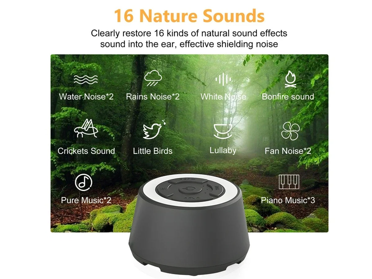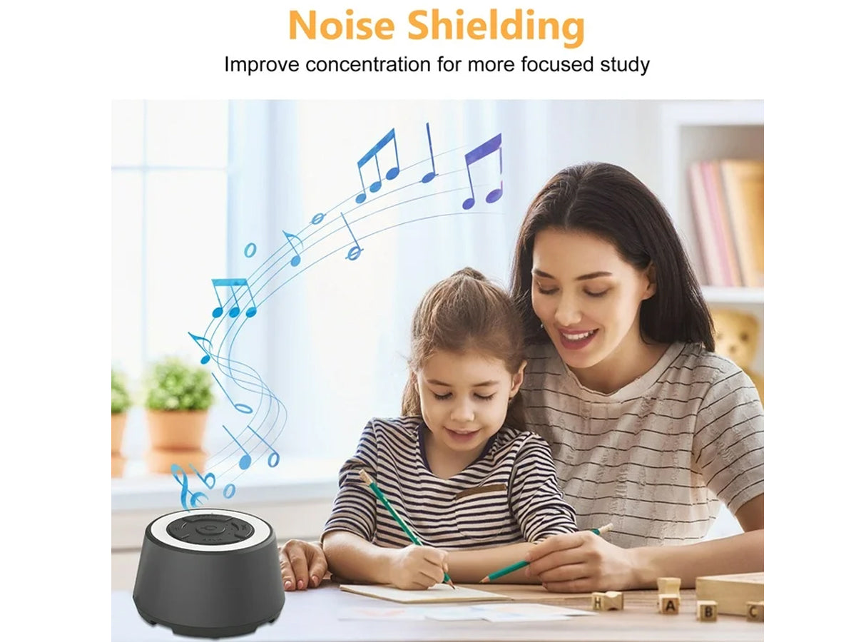 This Noise machine provides you customized Sound experience. With two-speed options for adjustable tone and volume, making noise machine very simple to create a personalized sound environment, excellently masking background noise and allowing for better sleep, office privacy, effective soothing for kids and babies, and calming for sound-sensitive dogs.