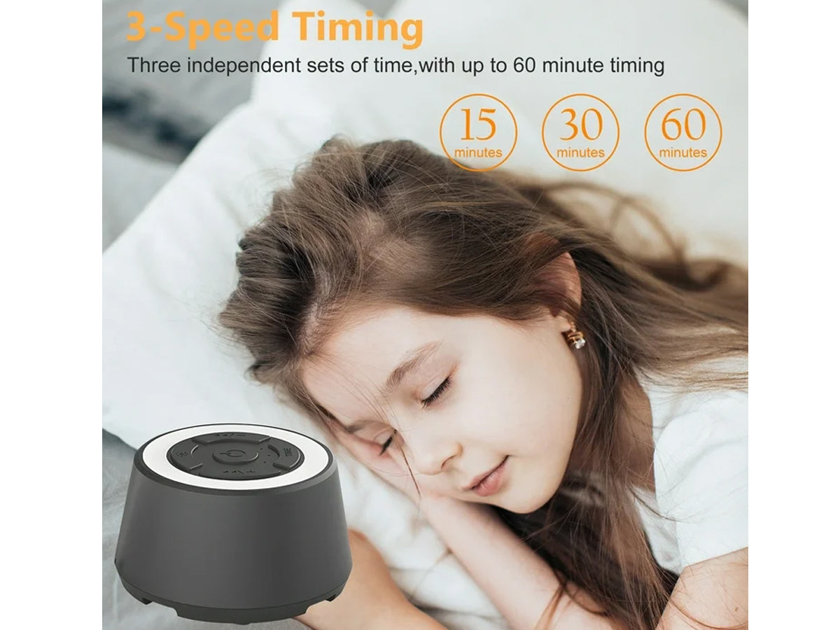 - Play noise machine at 15, 30, 60min intervals with auto-off timer settings.
