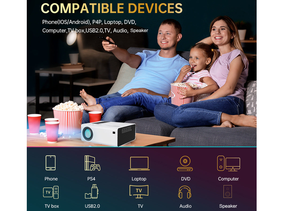 WiFi Projector is suitable for high definition home theater, private theater, business presentations, small meetings, multimedia teaching, KTV video entertainment, nightclubs, party entertainment, etc. For added home entertainment value, it has a built-in stereo speaker as well. This WiFi Projector has 1000 lumens brightness and 1024 x 600P native resolution provide exceptional display quality