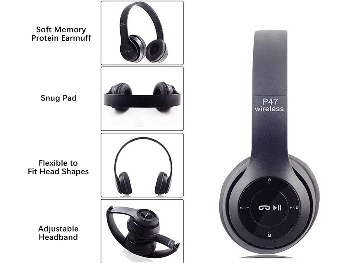 Rechargeable Wireless Headphones with adjustable head-band and super comfortable earmuffs are equipped with Bluetooth 5.3 technology ensures fast and stable connections to your Bluetooth devices and low latency during audio/video streaming. These wireless headphones also have a high-quality built-in mic for hands-free calling. No no more worries about audio dropouts during phone calls and music listening.