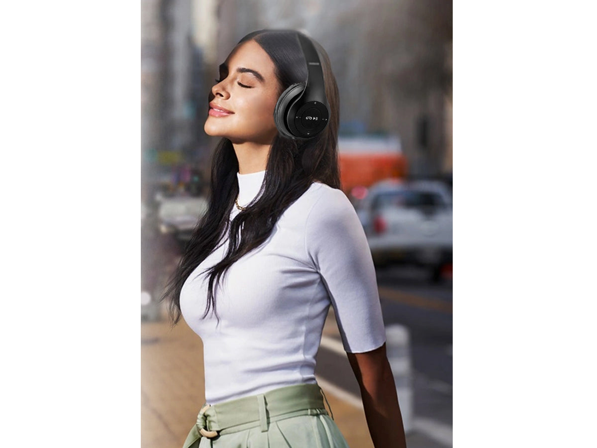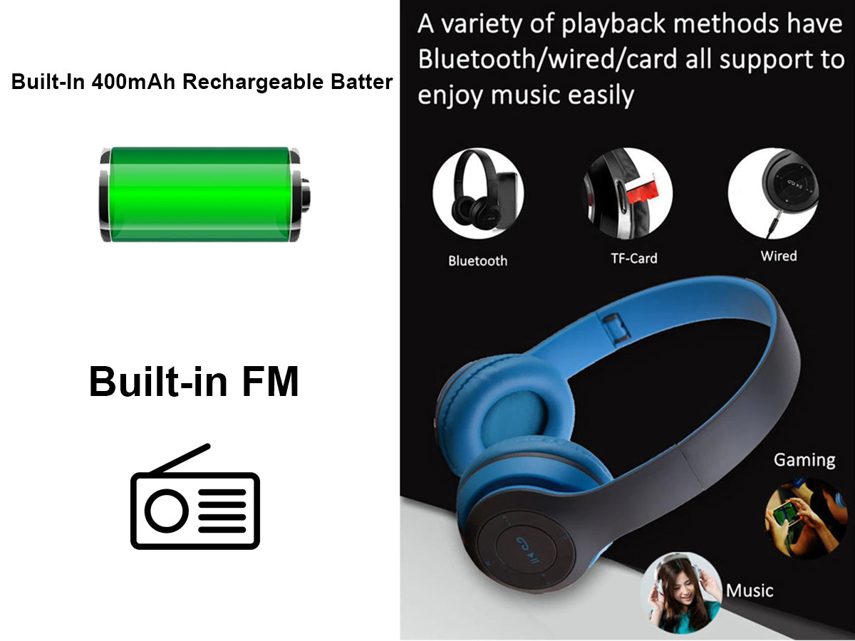Rechargeable Wireless Headphones with adjustable head-band and super comfortable earmuffs are equipped with Bluetooth 5.0 technology ensures fast and stable connections to your Bluetooth devices and low latency during audio/video streaming. These wireless headphones also have a high-quality built-in mic for hands-free calling. No no more worries about audio dropouts during phone calls and music listening.