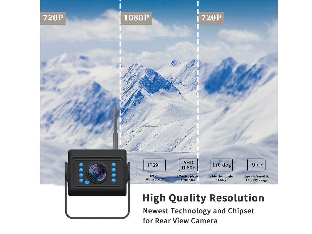 Experience enhanced safety and convenience with our 4.3" Wireless Car Reversing Camera System. Featuring an upgraded HD 1080P display, 170° wide view angle, and IP69 waterproof rating, it offers crystal-clear visuals and durability. With 9 IR night vision LEDs, automatic angle adjustment, and built-in parking lanes, it ensures improved visibility and easier parking. Enjoy a safer driving experience with our versatile and reliable camera system.
