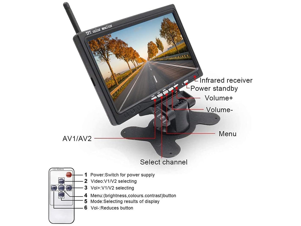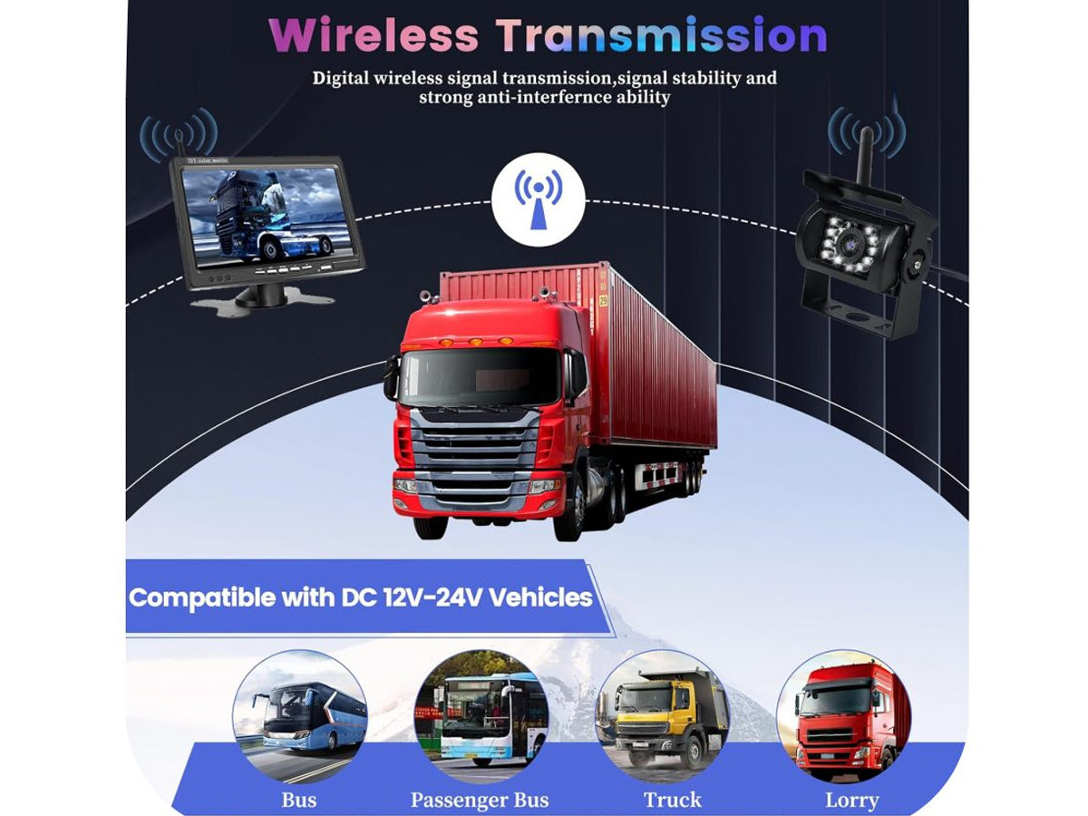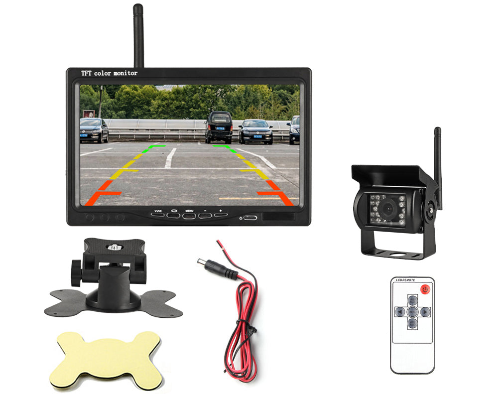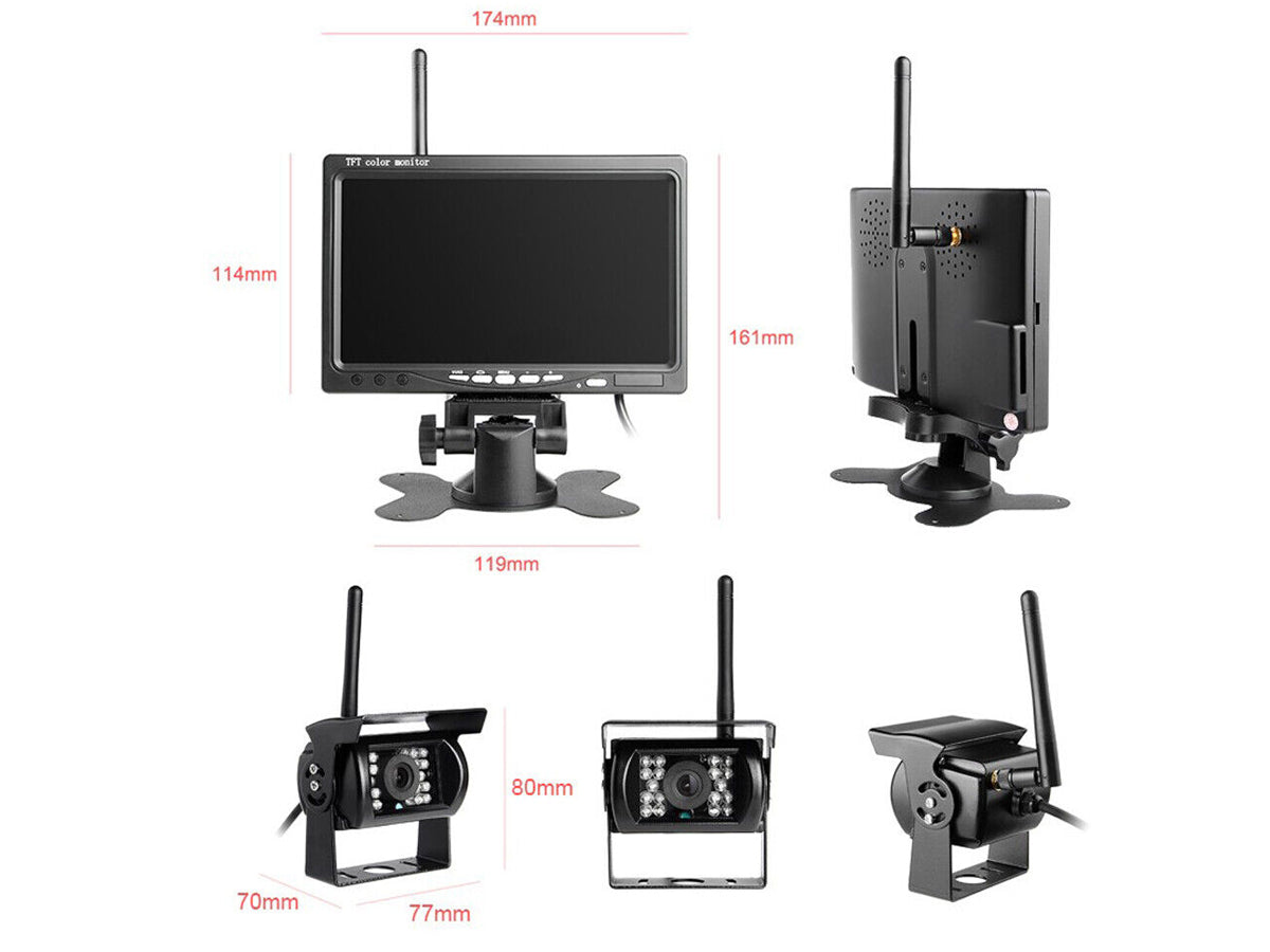 Experience seamless reverse parking with our 7" LCD Monitor and Reversing Camera Kit. Featuring a high-resolution monitor, water-resistant camera with night vision, and easy DIY installation, it offers real-time rear view while backing up. With a wide 120° view angle and 25m wireless range, it's perfect for various vehicles and security needs.