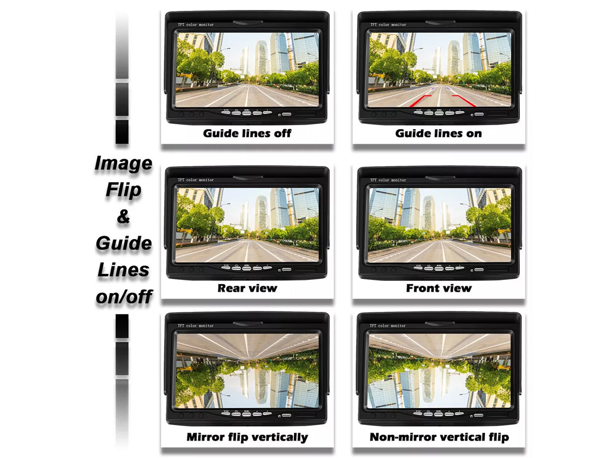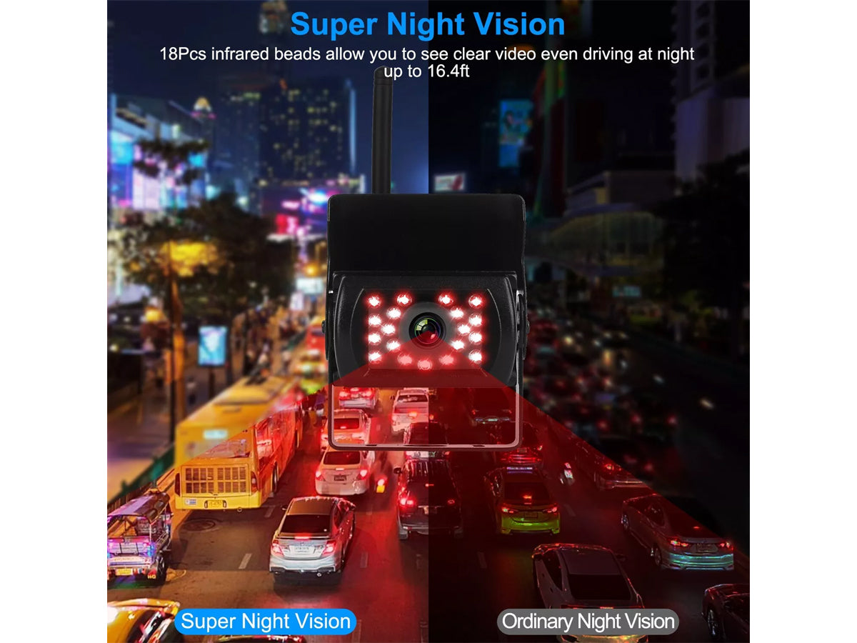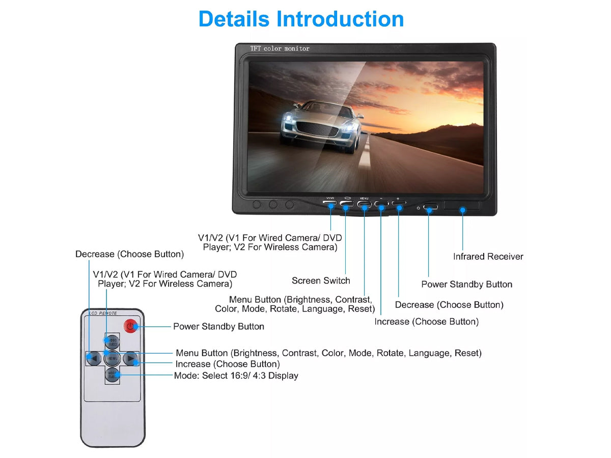 7" TFT LCD WIDE SCREEN WIRELESS MONITOR--Anti-glare high resolution. It will start up automatically, and synchronously display the video from rear view when you're backing or braking your car.