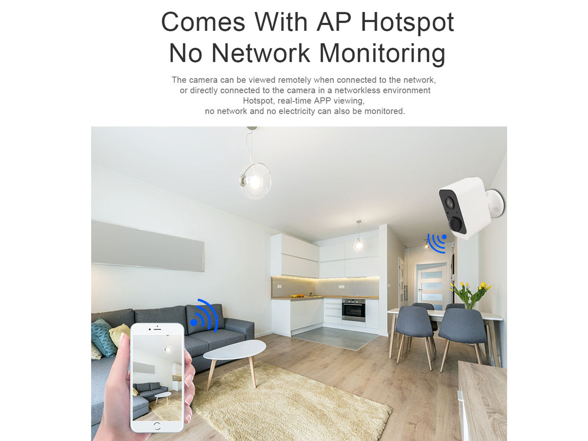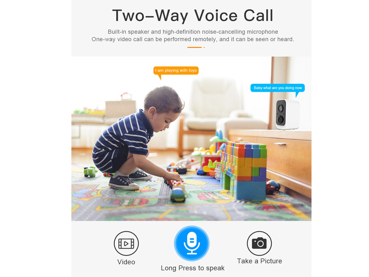 This 2K Waterproof WiFi Smart Security Camera has two-way voice chat with the help of a built-in speaker and a high-sensitivity microphone. The app support feature and highly sensitive PIR human body detection, it will give you a push notification when someone passes by.