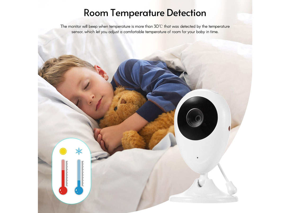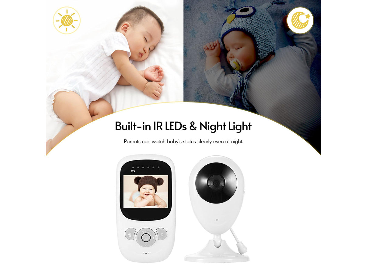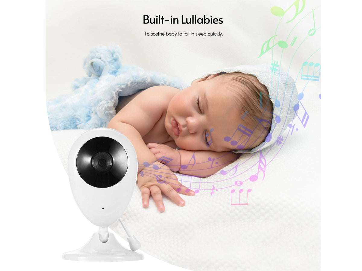 This Rechargeable Wireless Baby Video Monitor has a 2.4-inch color LCD, two-way audio, built-in Music and automatic night vision activation, a built-in temperature sensor, WiFi long range, and 700mAh rechargeable batteries.